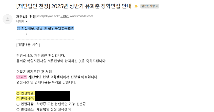 [재단법인 천정] 다섯 번의 유희춘 장학금 지원 도전기 (feat. 면접 탈락 후 재지원)