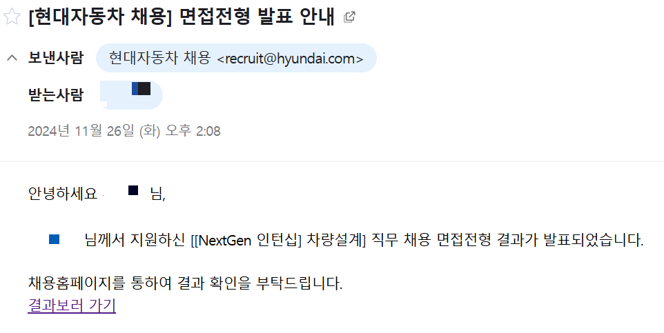 [2024 하반기] 현대자동차 NextGen 인턴십 - 연구개발[차량설계] - (2) 직무면접/인성검사
