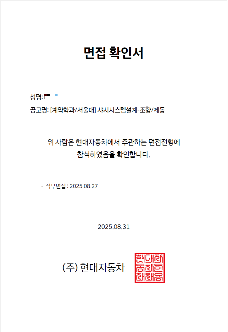 [2025 상/하반기] 현대자동차 계약학과 - 샤시시스템 설계 (조향/제동) (서울대) - 제동 시스템 설계 - (5) 회사 면접[2] (회사면접)